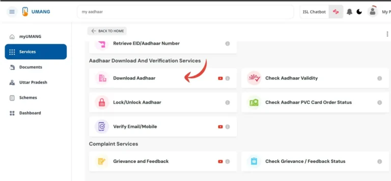 • DigiLocker – A secure government cloud platform for storing and retrieving your Aadhaar digitally.